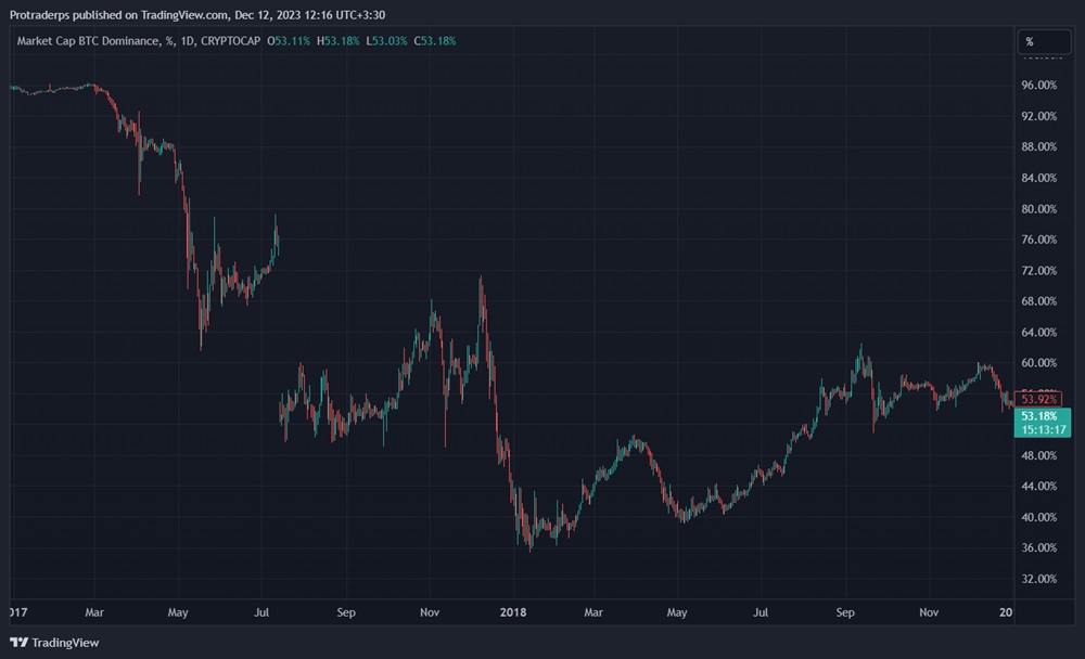 همه ما می‌دانیم که بیت کوین، بزرگترین رمزارز جهان از نظر مارکت‌کپ، به طور گسترده‌ای در سراسر جهان معامله می‌شود. هرچند که تسلط بیت کوین قبلاً نزدیک به ۱۰۰٪ بود، اما حضور و رواج آلت‌کوین‌ها منجر به کاهش تسلط بیت کوین شده است. زمانی که مارکت‌کپ چندین آلت‌ کوین مهم میزان مارکت‌کپ بیت کوین را کاهش می‌دهد، ممکن است این امر نشانه شروع یک فصل آلت‌کوین یا همان آلت سیزن باشد.